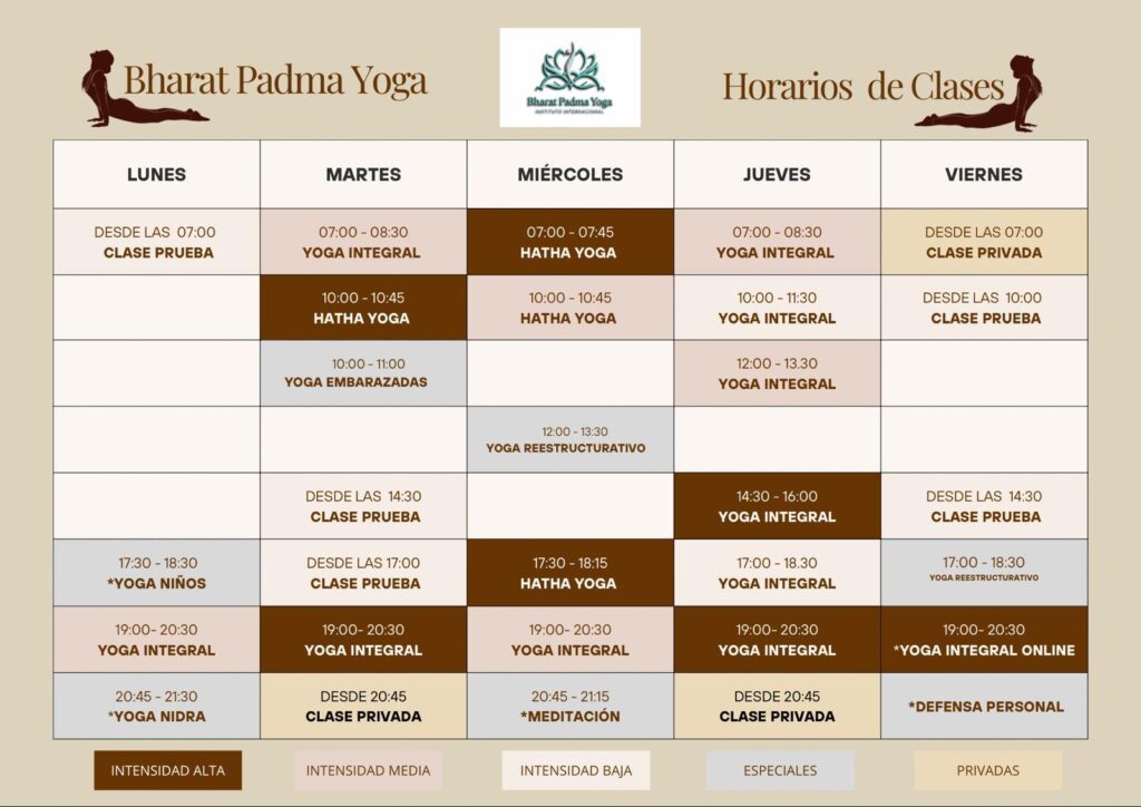 Explora nuestra variada oferta de clases y encuentra el momento perfecto para unirte a nosotros en tu viaje de yoga. ¡Bienvenido a Bharat Padma Yoga!