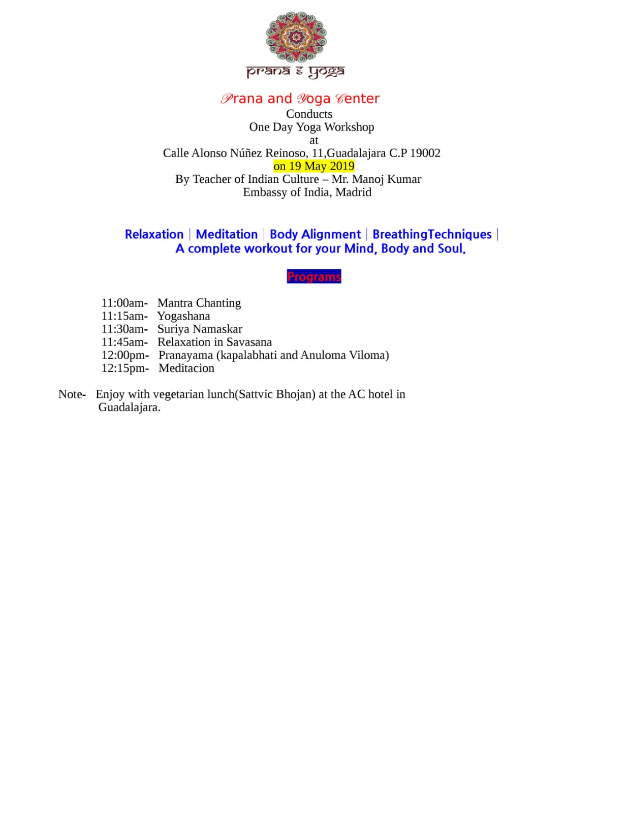 Fecha: 19 de mayo en Prana Yoga.